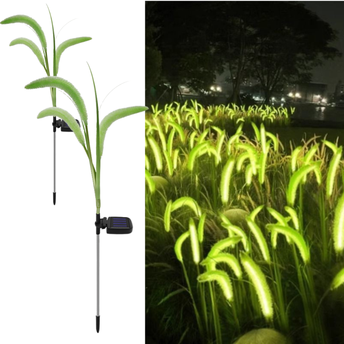 Set 2 lampi solare LED 🌿 tip iarba ornamentala verde 80cm, lumina calda, IP66 – decor natural si iluminare eficienta!