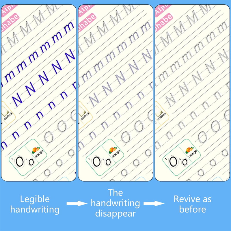 Upgraded A4 Magic Practice Copybook,Utilizati un stilou Magic dedicat, faceti o multime de practica, apoi urmariti-i cum reproduc si isi imbunatatesc scrisul de mana Intr-un timp scurt, Acest caiet de lucru cu design unic permite copiilor sa stapaneasca fara efort abilitatile de scriere.