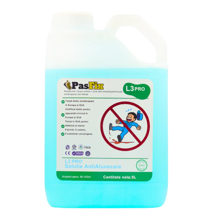 PasFix L3 PRO 5L este soluția ideală pentru spații comerciale și publice unde siguranța este prioritară: restaurante, dușuri publice, piscine, vestiare sau orice zonă cu trafic ridicat și risc crescut de alunecare. Formula profesională oferă performanță de lungă durată fără a modifica aspectul pardoselii.
